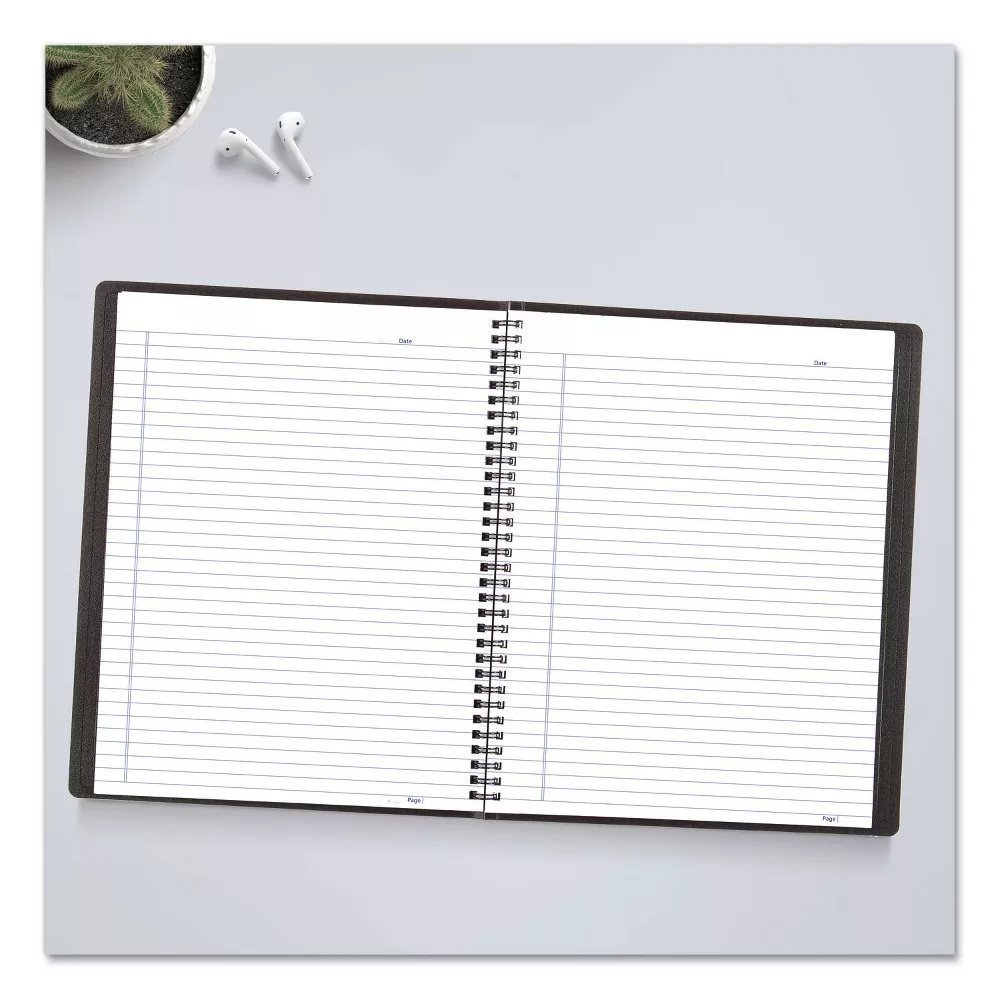 This business and academic notebook features a flexible, textured poly cover that protects pages from wear and tear. Twin-wire binding keeps pages secure and allows the notebook to lie flat for easy writing. Each sheet is ruled with a margin and includes space for the date at the top, making it ideal for organized note-taking and record-keeping.